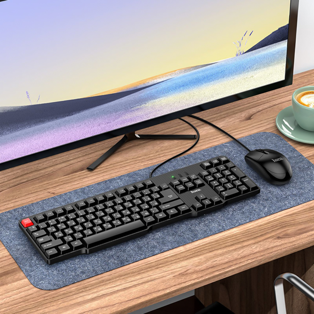 Комплект Hoco GM16 – это сочетание проводной мембранной клавиатуры и оптической мыши, предназначенное для комфортной и эффективной работы. Клавиатура имеет 104 клавиши с шелкографическими символами и УФ-покрытием, что обеспечивает длительный срок службы до 8 миллионов нажатий.