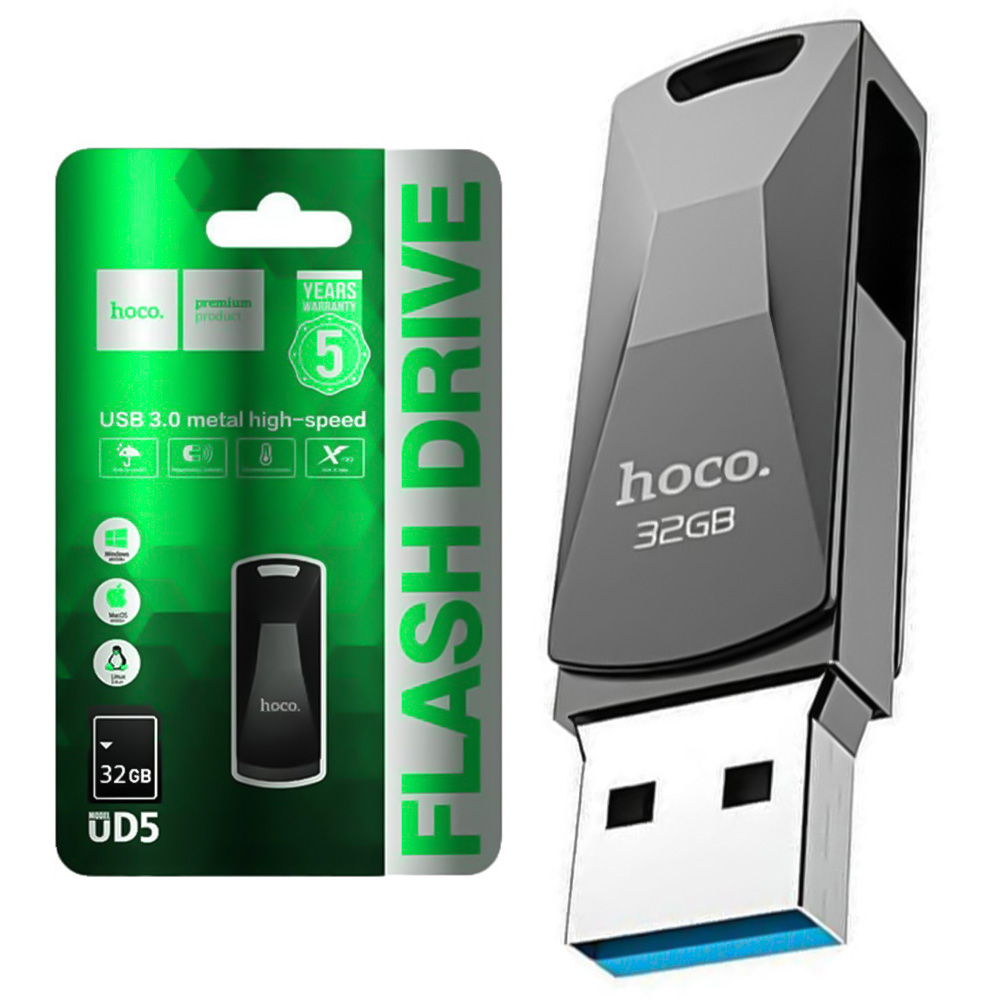 USB-флешка Hoco UD5 32GB сочетает в себе стильный металлический корпус и хорошую скорость работы, благодаря чему подходит как для учёбы, так и для работы или хранения личных файлов. Благодаря интерфейсу USB 3.0 флешка обеспечивает быстрое копирование фото, видео, документов и других данных, что значительно экономит время по сравнению с обычными накопителями USB 2.0.