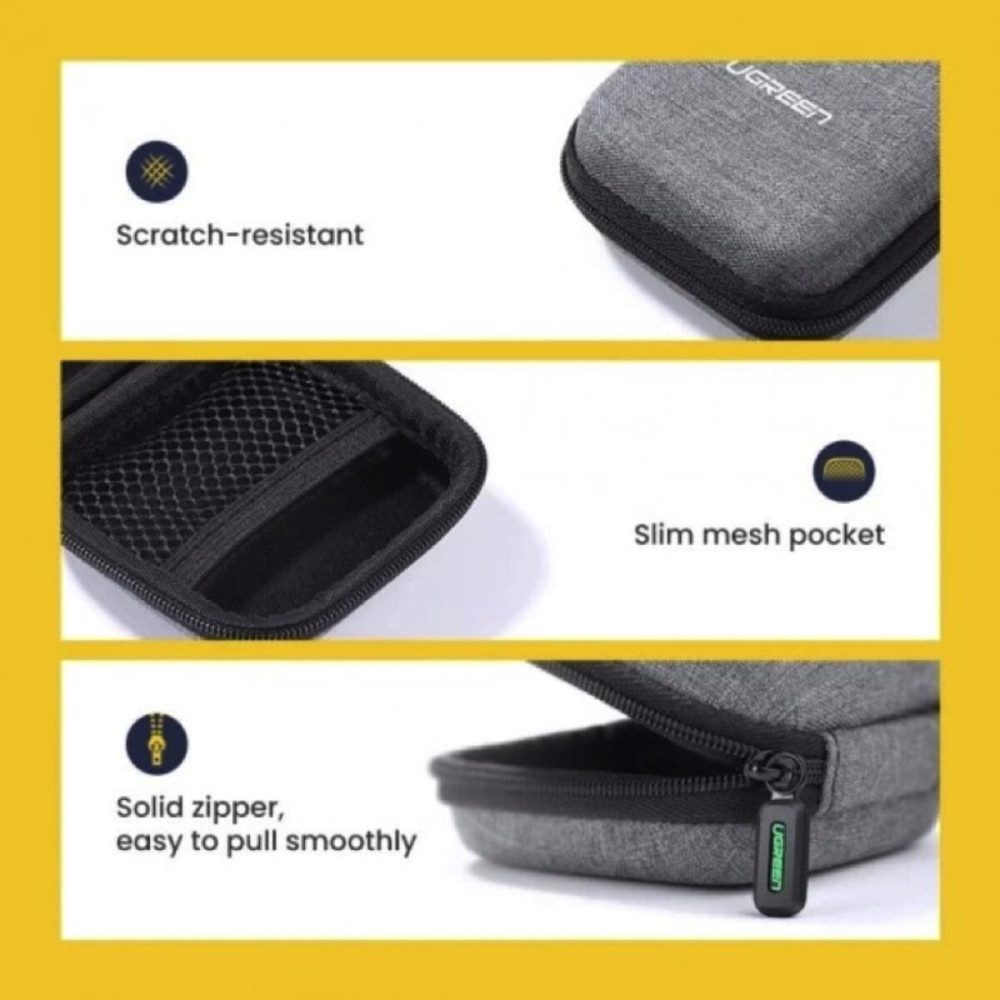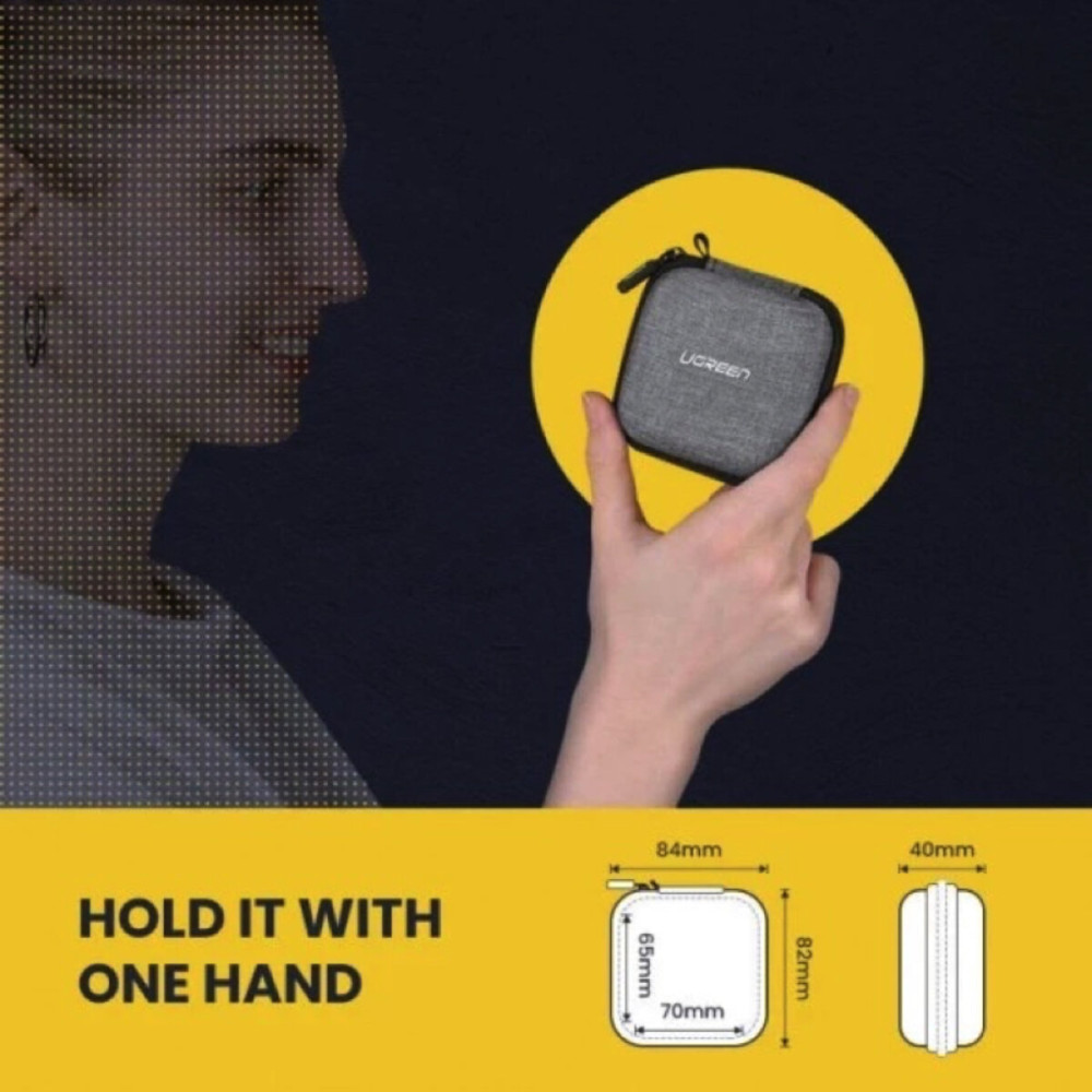 Чехол-органайзер для наушников UGREEN LP128 Earphone Carrying Case. Жёсткий чехол квадратной формы покрыт износостойким тканевым материалом. Когда вы в пути или путешествуете, вы всегда хотите иметь при себе музыку или важные гаджеты. Этот ударопрочный и водоотталкивающий футляр для хранения поможет вам в этом.