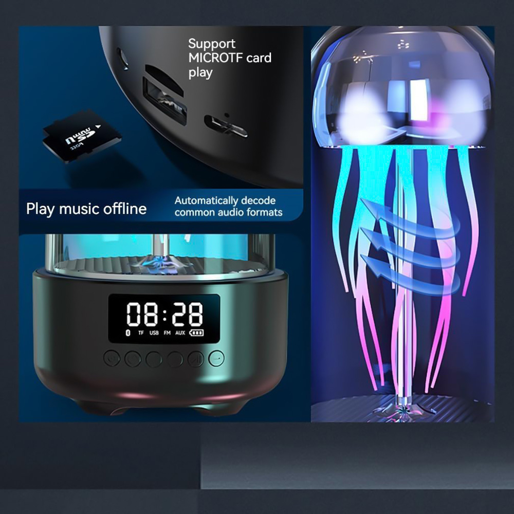 Портативная акустика "Медуза" поддерживает беспроводное соединение Bluetooth 5.0 на частоте 2,4 ГГц в радиусе десяти метров. Также есть режимы воспроизведения аудио с USB-флешки, карты памяти TF и подключенных к колонке устройств кабелем AUX.