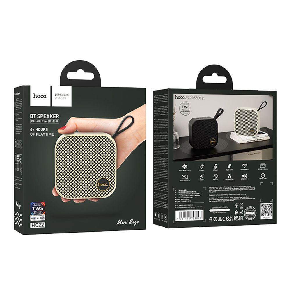 Портативная колонка Hoco HC22 – это компактное аудиоустройство, позволяющее наслаждаться любимой музыкой в любом месте. Легкая конструкция, качественное звучание и беспроводное соединение делают ее идеальным спутником для дома, путешествий и прогулок.