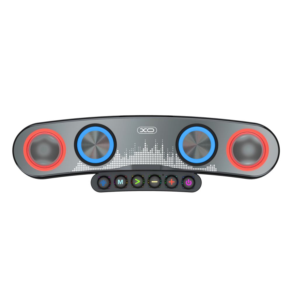 Колонка XO F36 Bluetooth Speaker - оригинальная, многофункциональная модель, которая станет отличным выбором для домашнего использования. Устройство впечатляет превосходным качеством звука, реалистичной передачей средних частот, отчетливым звучанием высоких частот и глубоких басов, благодаря двум динамикам общей мощностью 10W и паре низкочастотных мембран диаметром 52мм. Колонка реализована в оригинальном, практичном дизайне, ее слегка изогнутый корпус надежно собран, изготовлен из прочного, приятного на ощупь пластика. Модель оснащена механическими клавишами для включения, управления подключением, воспроизведением и RGB подсветкой, которая подсвечивает их и мембраны низкочастотных и полно диапазонных динамиков, создавая захватывающий, завораживающий визуальный эффект. Колонка поддерживает проводное и беспроводное подключение к источнику звука, подключение проводного микрофона, проигрывание музыкальных файлов с флешки и карты памяти, оснащена FM-приемником и встроенной батареей емкостью 2400mAh.