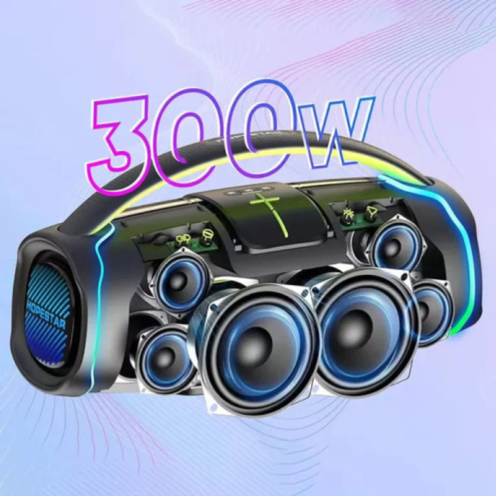 Портативная беспроводная Bluetooth колонка с микрофоном HOPESTAR A65 – мощная Bluetooth-колонка 300 Вт, созданная для тех, кто ценит качественный звук, яркие эмоции и свободу в использовании. Она одинаково хорошо подходит для домашних развлечений, вечеринок или отдыха на природе, обеспечивая глубокие басы, чистые высокие и объёмное звучание. Благодаря микрофону вы можете устроить импровизированное караоке с друзьями или в кругу семьи.