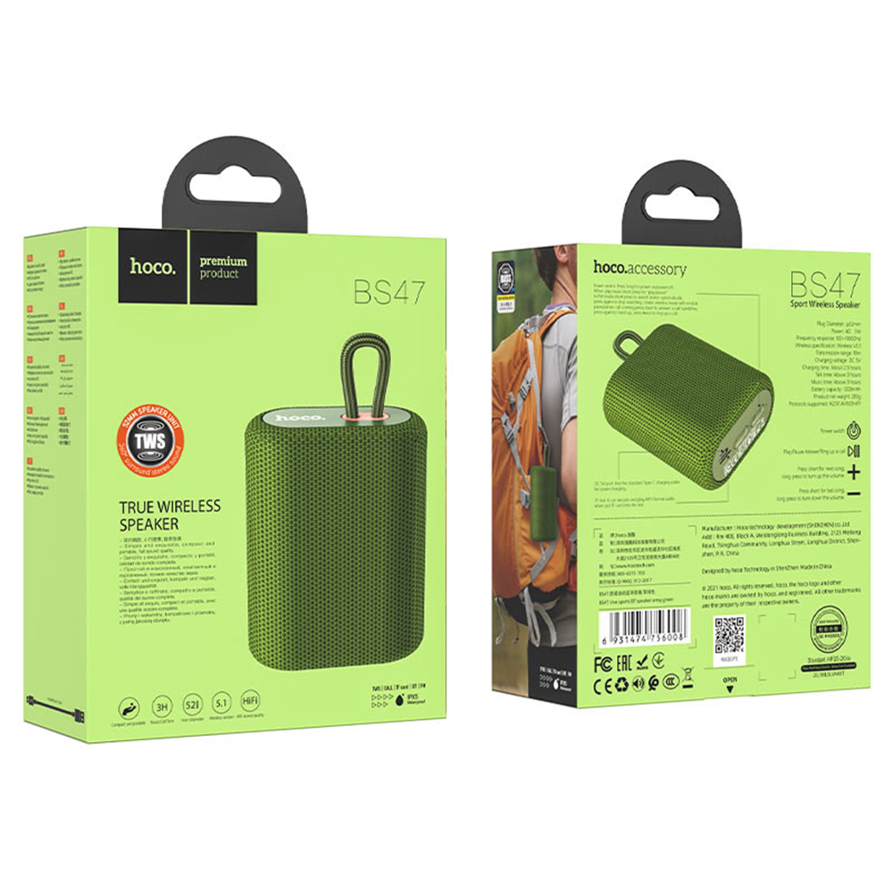 Купить блютуз колонку Hoco BS47 однозначно стоит, поскольку с ней можно отвечать на входящие звонки, слушать любимые треки, брать с собой в путешествии и просто наслаждаться моментом.