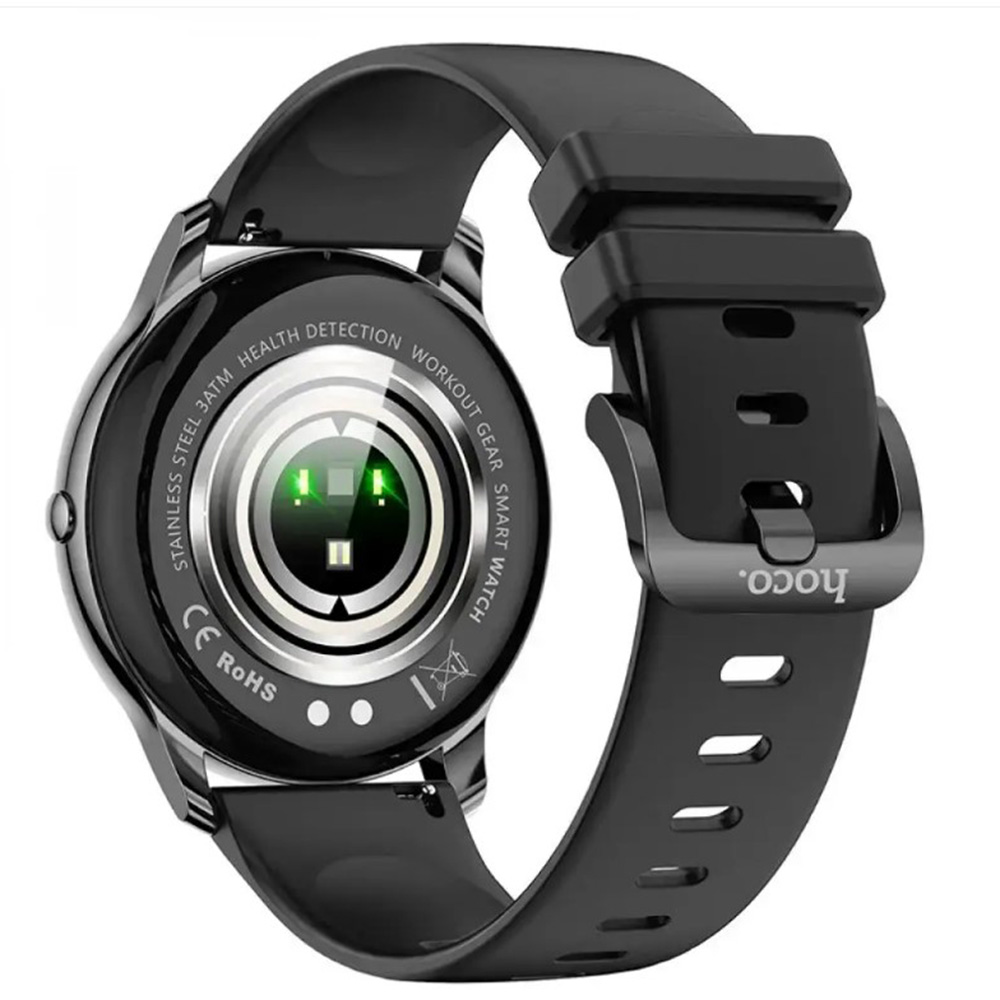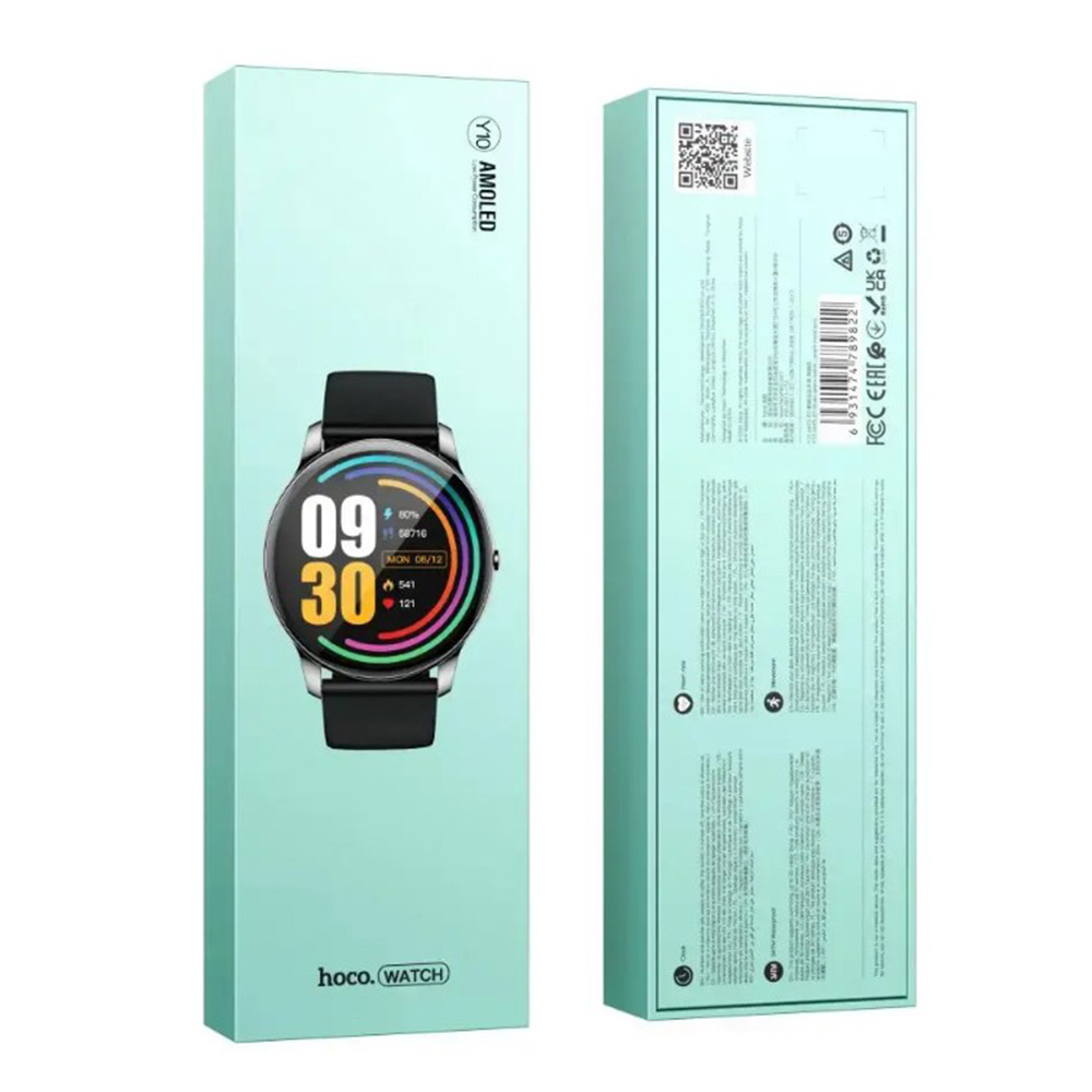 Смарт-часы Hoco Y10 - это современный, высокотехнологичный гаджет, который реализован в стильном, классическом дизайне, что на первый взгляд практически ничем не отличается от обычных часов. Аксессуар имеет компактные размеры и небольшой вес, привлекательно смотрится на руке. Его круглый экран защищен ударопрочным стеклом, а корпус выполнен в практической форме с элегантными изгибами, изготовлен из алюминиевого сплава. Благодаря защите от воды и пыли по стандарту IP68, устройство можно не снимать во время мытья рук и плавания. Его отличительной особенностью является высококачественный AMOLED экран, с диагональю 1.3" и разрешением 360x360. Выделяется отличной контрастностью с глубоким черным цветом, яркой равномерной подсветкой и широкими углами обзора, а его стабильная беспроводная связь со смартфонами под управлением Android и iOS - модулем Bluetooth V5.0, не поддерживает функцию звонков, его широкий функционал позволит управлять некоторыми функциями смартфона, следить за показаниями организма и дополнен спортивными режимами для более эффективных тренировок. определять частоту сердечного ритма в реальном времени, контролировать качество сна, подсчитывать пройденные шаги и затраченные калории.