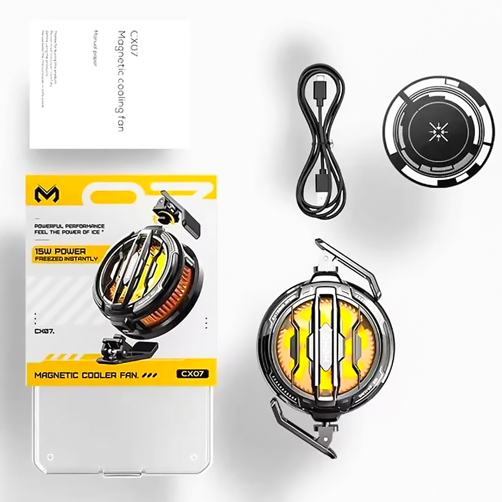 MEMO CX-07 – это кулер-охладитель, необходимый геймерам, у которых гаджеты нагреваются при активной эксплуатации. Вентилятор работает практически бесшумно и оснащён красивой RGB-подсветкой, что является его абсолютным преимуществом среди других охладителей. Модель питается от кабеля Type-C to USB длиной 1 м. Вес составляет всего 68 г, поэтому устройство не утяжеляет гаджет при использовании.