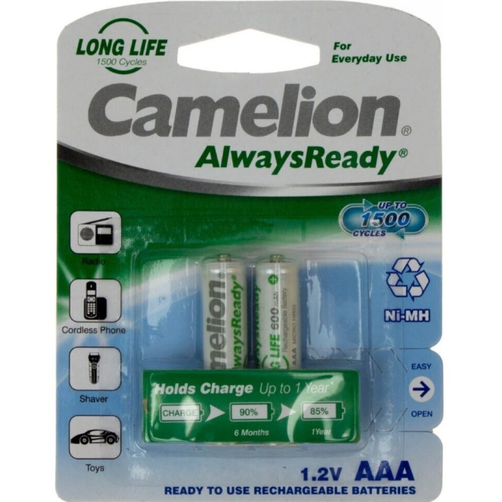 Батарейки Camelion Rechargeable Battery 600mAh, перезарядные. Батарейка уже заряжена, после 6 месяцев использования аккумулятор способен заряжаться на 90%, после одного года использования на 85%. Типоразмер AAA HR03. Напряжение питания - 1.2V.