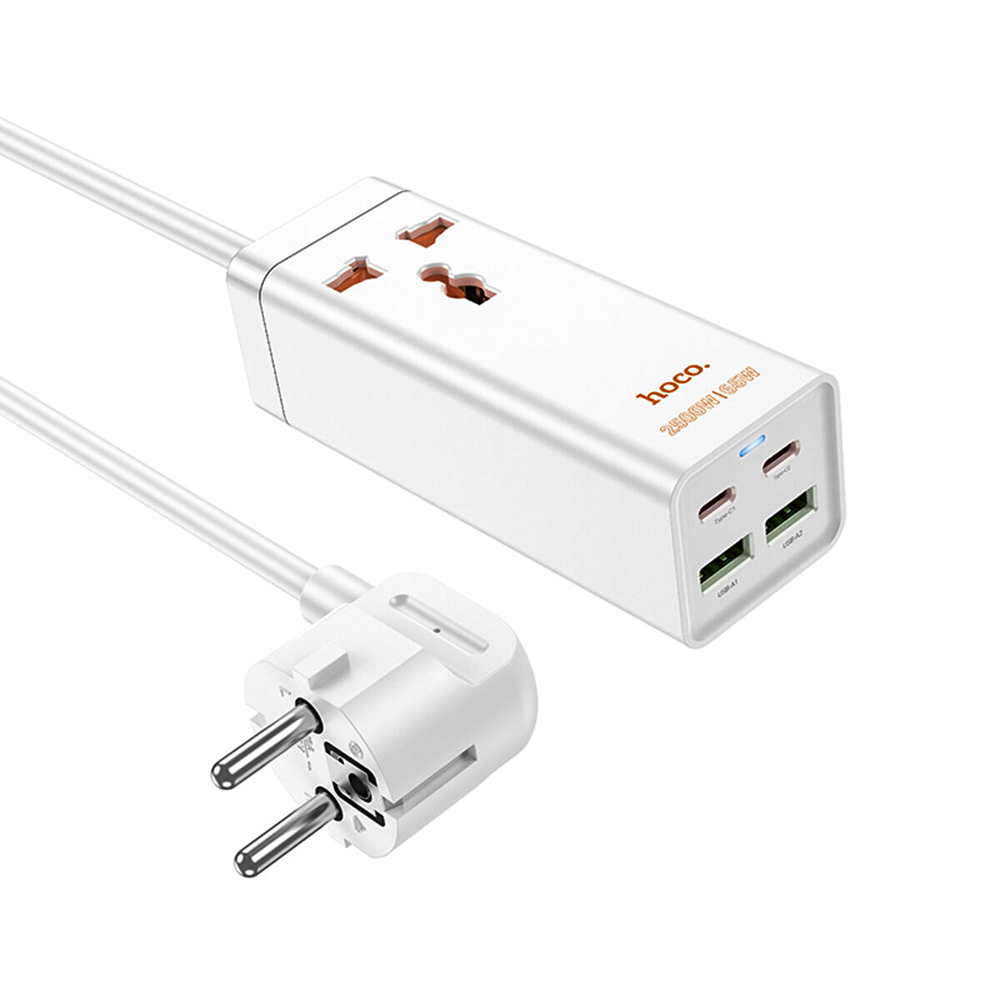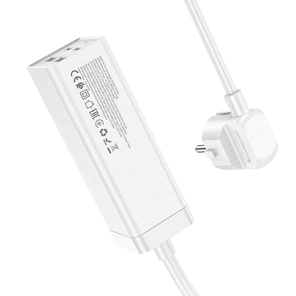 Сетевой удлинитель Hoco AC10A 2Type-C / 2USB / 1Socket QC3.0 PD65W 1.5m, White