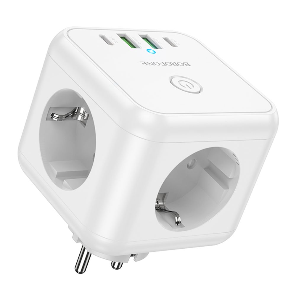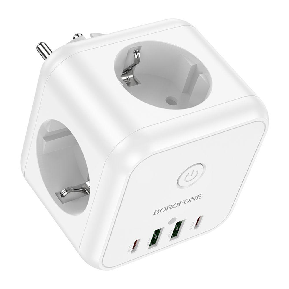 Сетевой разветвитель Borofone BAC11 — многофункциональное решение для питания бытовой техники и одновременной зарядки гаджетов. Совмещает классические розетки и современные порты USB/Type-C в компактном корпусе.