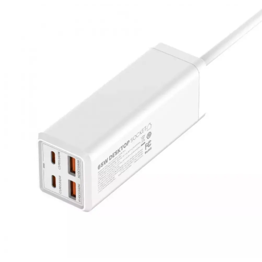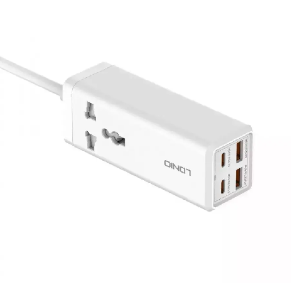 Сетевой удлинитель LDNIO SC1418 Power Strip - функциональный аксессуар, который поможет удлинить сетевой кабель устройства для его подключения к труднодоступной, удаленной розетке и быстро зарядить большинство современных гаджетов и ноутбуков. Модель обладает компактными размерами и оригинальным, практичным дизайном, благодаря чему, устанавливаясь, например, на рабочем столе, не отвлекает на себя внимание и позволит с удобством подключать все необходимые устройства. Корпус удлинителя имеет приятную на ощупь поверхность и скругленные ребра, изготовлен из качественного поликарбоната, отличающегося стойкостью к огню и ударам. На его верхней панели находится универсальная розетка с защитой от детей, в одном из торцов - выход встроенного кабеля длиной 2м, а в другом - LED индикатор, 2 разъема Type-C и 2 - USB. Каждый из разъемов Type-C поддерживает технологии PPS и PD с максимальной исходящей мощностью 65Вт, а каждый из USB портов - QC с мощностью до 60Вт. Максимальная входящая мощность - 2500Вт, исходящая - 65Вт.