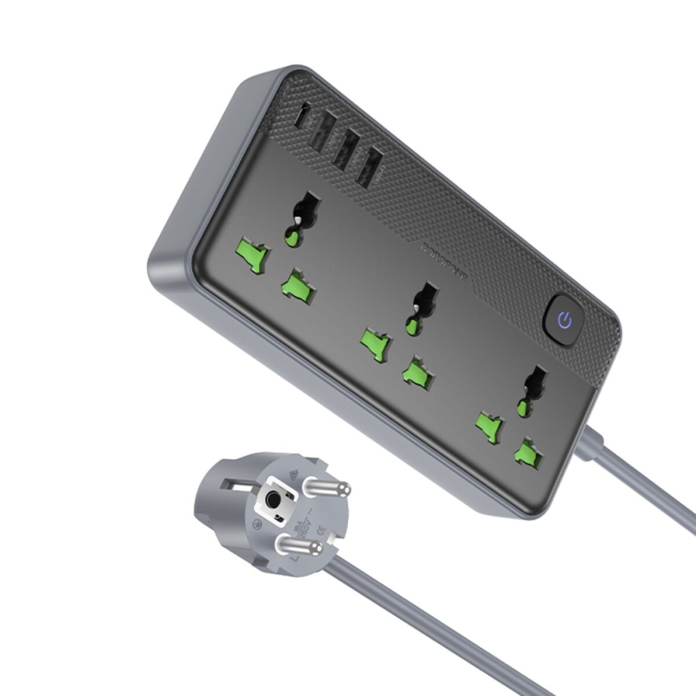 С четырьмя встроенными портами сетевой удлинитель Borofone BAC2A Leya позволяет оптимально использовать доступное пространство в розетке. А благодаря дополнительным розеткам AC вы можете одновременно подключать не только электронные устройства, но и другие бытовые приборы с общей мощностью до 2500 Вт.