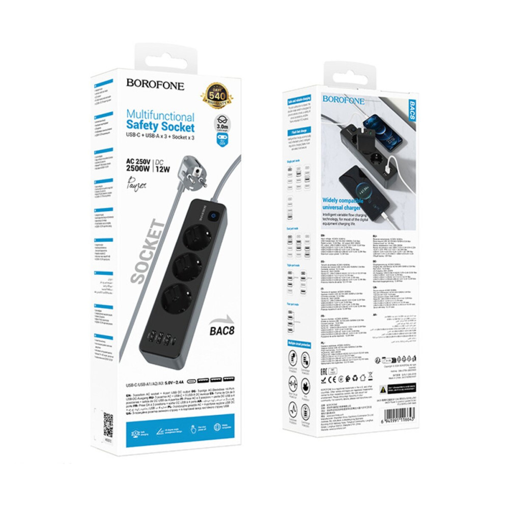 Сетевой удлинитель Borofone BAC8 Power — это идеальное решение для тех, кто ищет универсальное и надежное устройство для подключения и зарядки нескольких устройств одновременно. Он сочетает в себе функциональность, безопасность и современные технологии, что делает его незаменимым помощником в вашем доме, офисе или любом другом месте, где требуется надежное распределение электроэнергии.