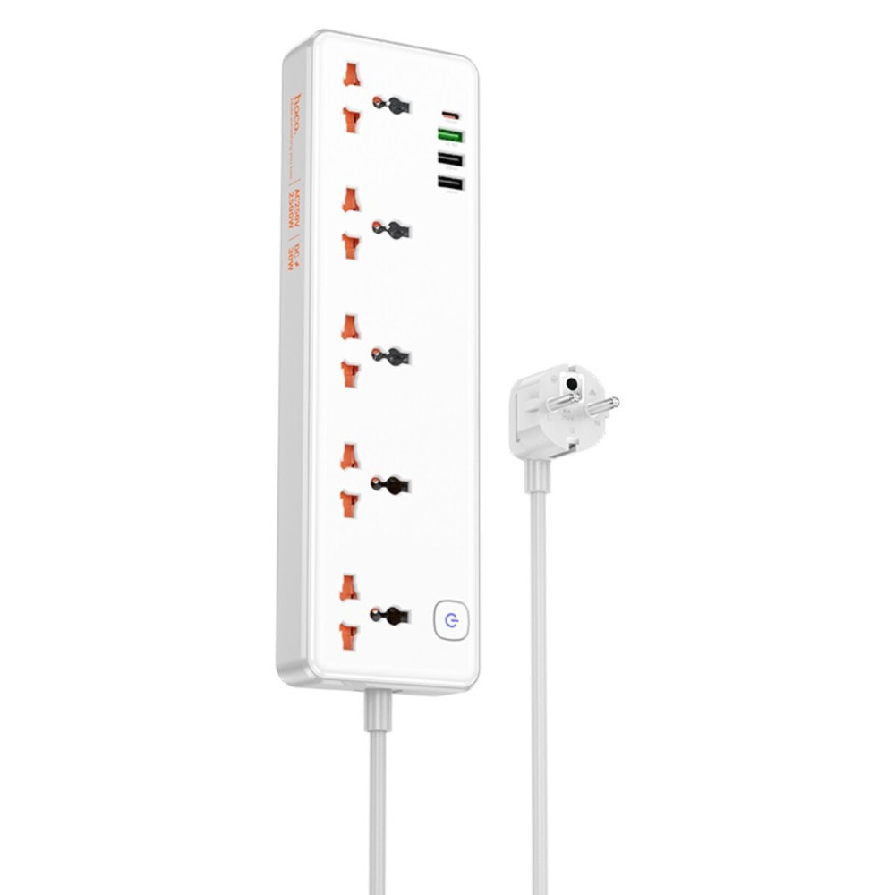 HOCO AC14A Rico 5-position socket (PD30W/1C3A) White — подключайте приборы к сети и заряжайте гаджеты одновременно.