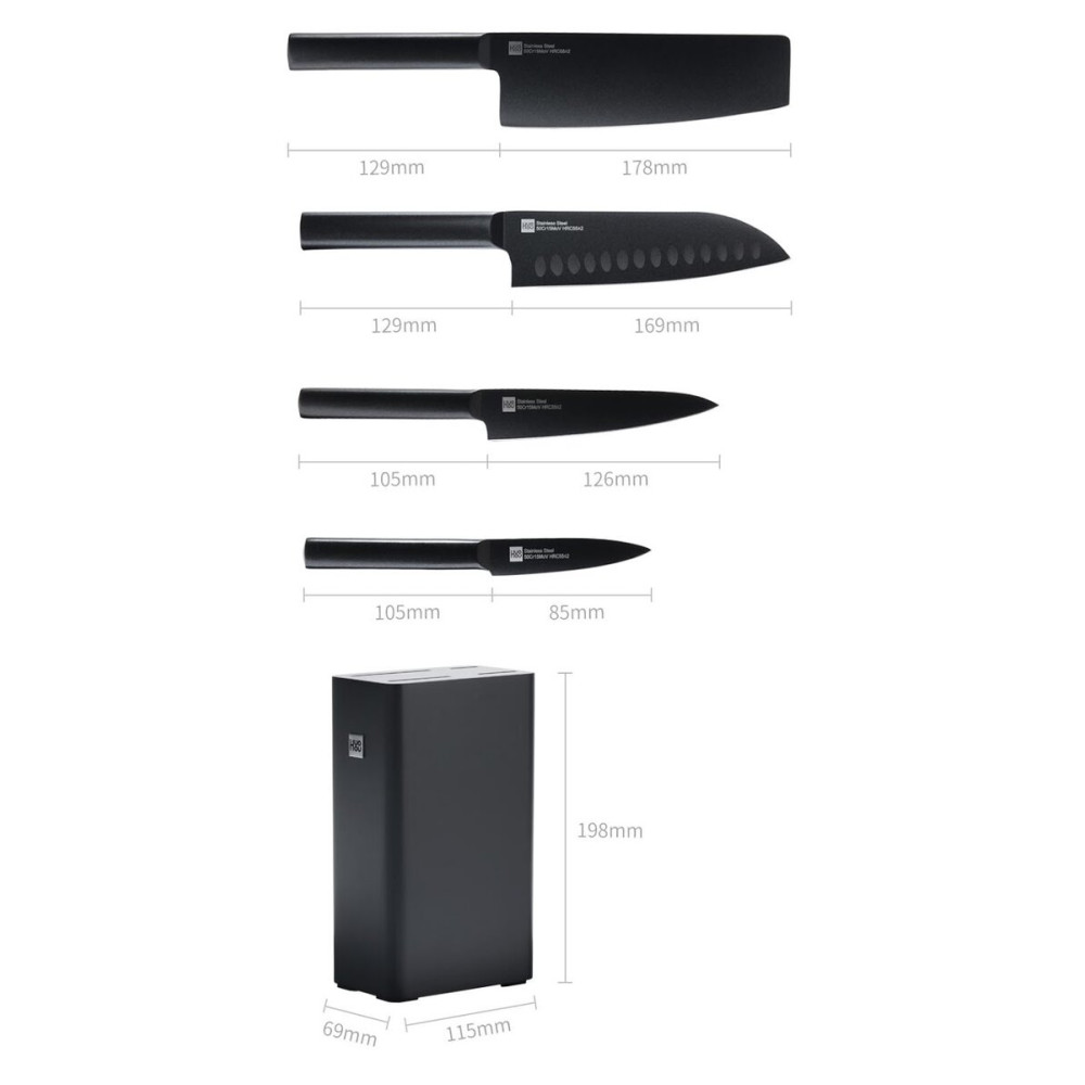 В наборе Xiaomi HuoHou Set of Knives с подставкой присутствуют ножи для разных продуктов, от мяса и рыбы до фруктов и зелени. С их помощью можно быстро приготовить овощной салат или освоить блюда экзотических кухонь мира.