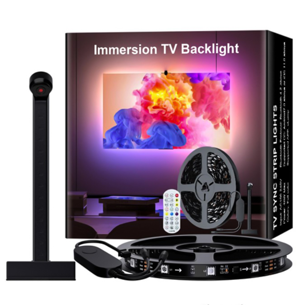 Светодиодная лента DX23014-BT – это 5-метровое инновационное решение для создания динамической подсветки телевизора, реагирующей на изменение изображения на экране. Модель сочетает в себе RGBIC-светодиоды, позволяющие каждому сегменту светиться отдельным цветом, HD-камеру с цветным сенсором для фиксации изображения и передачи сигнала подсветке, а также два способа управления – через пульт дистанционного управления или мобильное приложение. Благодаря этой технологии удается создать атмосферу полного погружения в фильмы, игры или музыкальные видео, ведь подсветка динамически меняется в соответствии с событиями на экране, добавляя глубины восприятия.
