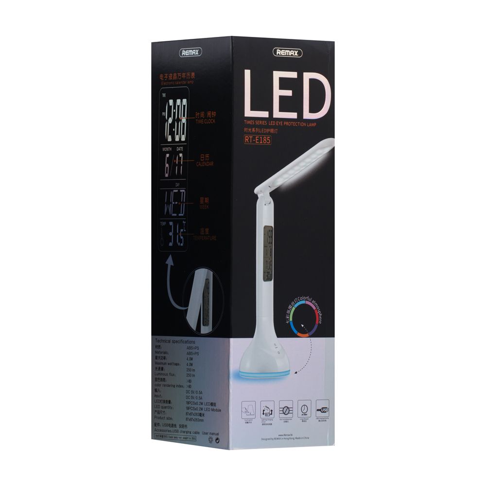 Настольная лампа Led лампа REMAX RT-E185 - складная led лампа с аккумулятором. В устройстве предусмотрена сенсорная регулировка режимов работы: теплый, холодный и натуральный. Аксессуар представлен с календарем и термометром. Используется led подсветка основания лампы. Время заряда составляет 4 часа. В комплекте устройства - кабель небольшого размера для заряда лампы.