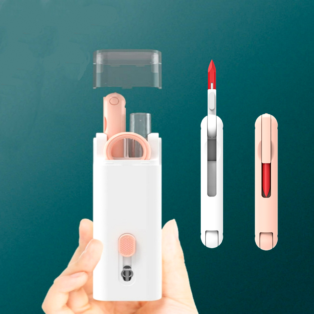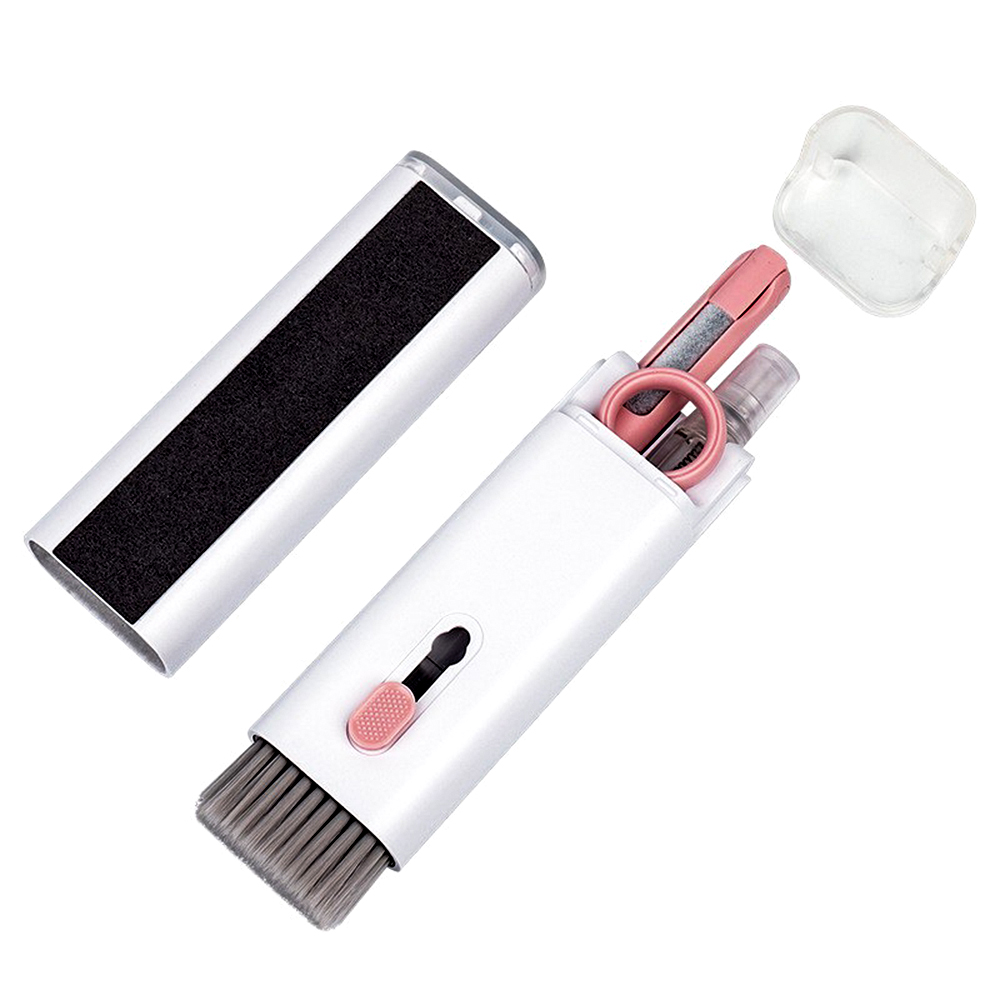 Щетка, антибактериальная губка, силиконовый наконечник, маленькая щеточка, бутылка с распылителем с жидкостью, фланель и клипса.