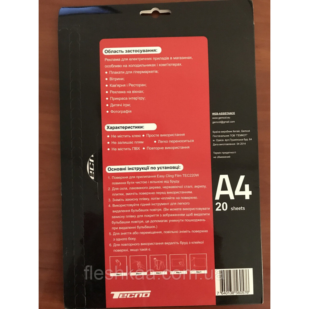 Фотоплёнка Tecno Easy Cling A4 — удобное решение без клея