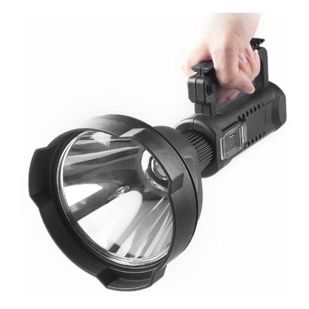 Основной источник света — мощный LED-прожектор P50 с зеркальным отражателем и прочной линзой, который обеспечивает яркость до 1000 люменов. Дополнительно сбоку расположена COB-панель с яркостью до 500 люменов для локального освещения.