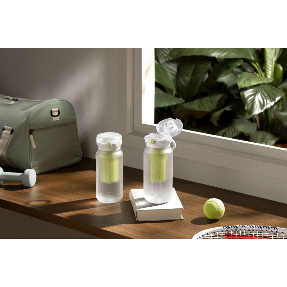 Встроенный фильтр позволяет заваривать любимые напитки прямо в бутылке — чай или воду с фруктами. Напиток остаётся чистым и приятным на вкус.