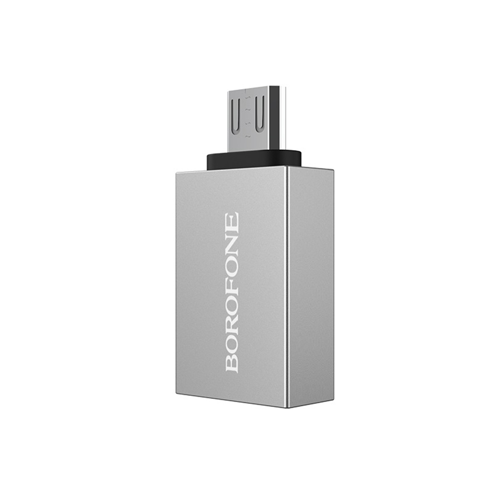 Borofone BV2 - компактний перехідник з допомогою, якого можна до пристроїв з роз'ємом Micro-USB підключити інші пристрої з конектором USB в тому числі і використовуючи кабелі з таким конектором. Для прикладу ви можете до смартфона з роз'ємом Micro-USB підключити інший смартфон, флешку, мишку, клавіатуру, геймпад, жорсткий диск.