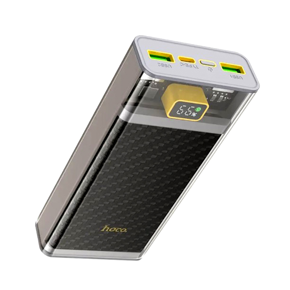 Power Bank Hoco J103A Discovery edition - це універсальна мобільна батарея, що здатна зарядити одночасно кілька гаджетів доволі швидко та безпечно. З-поміж усіх моделей J103A вирізняється своїм незвичайним дизайном, адже він має прозору лицьову панель, через яку видно плату з Лед-дисплеєм.