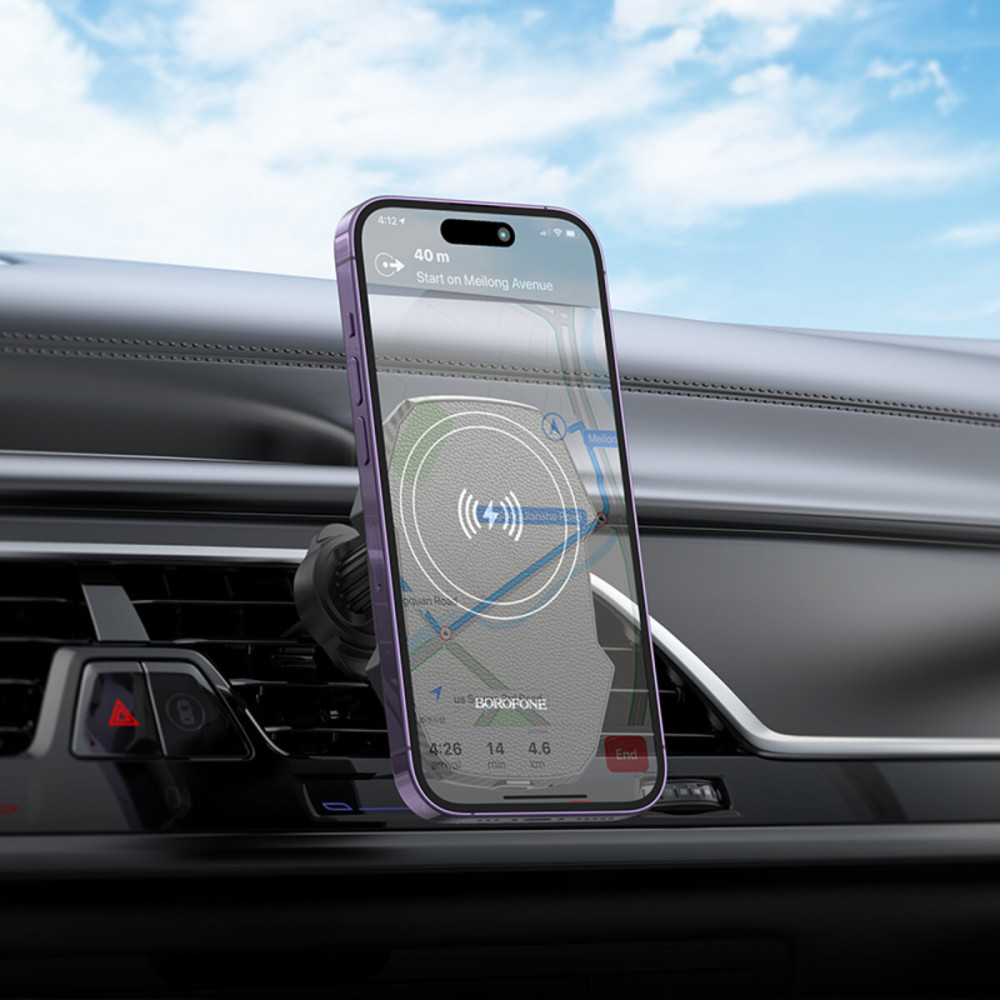 Тримач для телефону з БЗП BOROFONE BH215 - зручний аксесуар для автомобіля. Він допомагає комфортно відповідати на дзвінки, повідомлення та користуватися навігатором на смартфоні під час водіння.