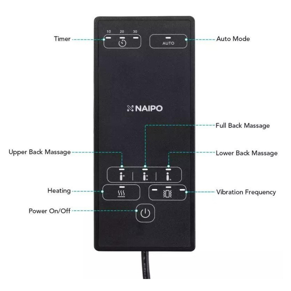 Масажна накидка на крісло NAIPO Neck & Back Massager з підігрівом, вібрацією та функцією масажу Шіатца (MGBK-2606H)